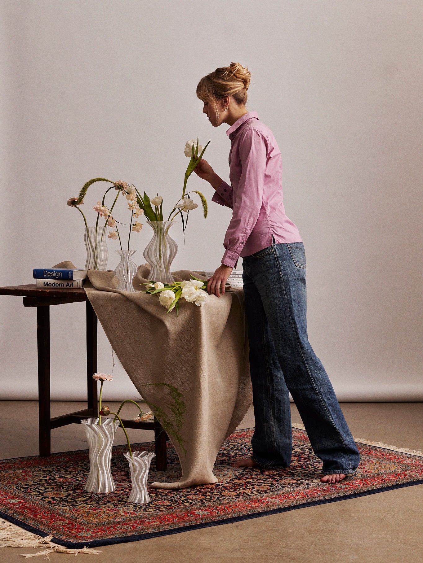 Its hourglass shape supports anything from a few loose stems to a fuller bouquet, allowing flowers to fall into place without force. Ideal for tables, shelves, or corners that need a subtle focal point without visual noise.
